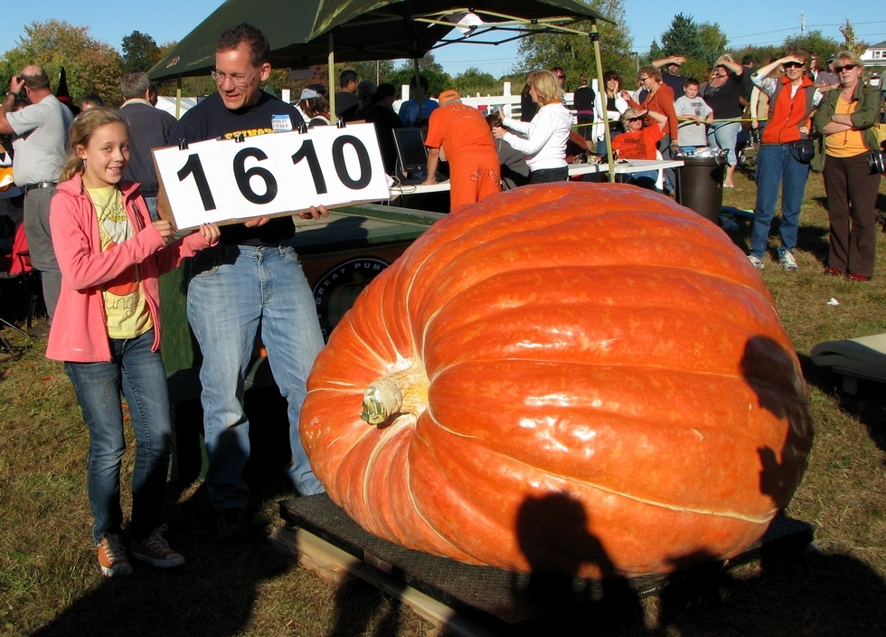 Charles, his daughter, and their 1610 Lieber 2010. So far as I know its the largest pumpkin to even win the Howard Dill Award.