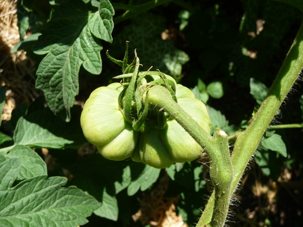 Another view of the yet quite small tomato (see other picture) on my first 7.33 Hunt plant.