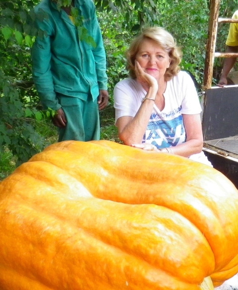 This pumpkin was grown from an Atlantic Giant seed acquired from Seeds S.A. I have been growing them for years for fun and what joy they have given me! we had a very rainy season and suffered severe 'damp' and 'powdery mildew' but in spite of that, produced this one which weighed in at 195 kgs, 429 lbs. All preparations are in progress now for this season and am holding thumbs for a MONSTER!