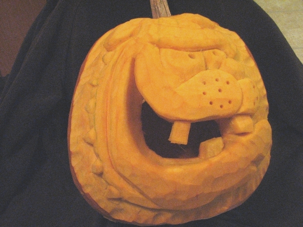 Bulldog mascot pumpkin I carved for my kids' school