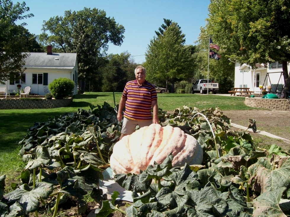 Jerry Bandura stopped by for a look see , I need smaller friends to make my pumpkin look bigger