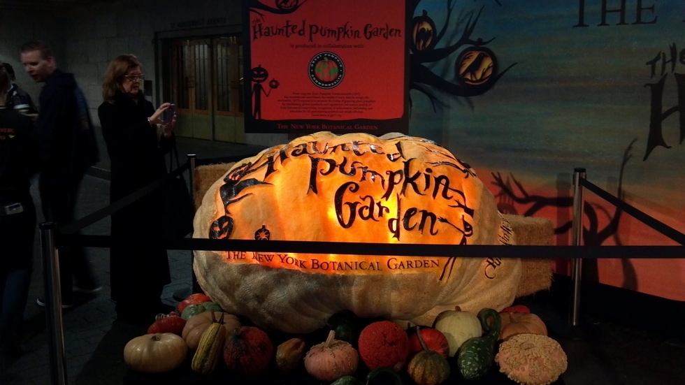 Getting ready to carve the biggest pumpkin ever carved at the New York Botanical Gardens