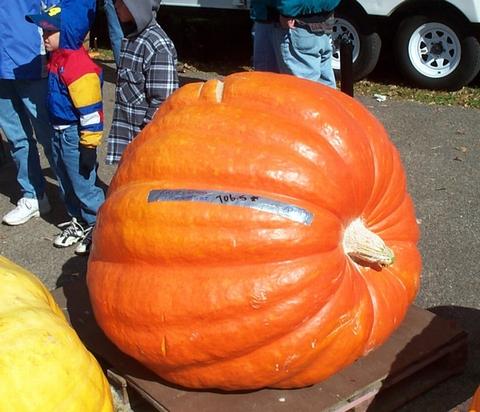 This was the only pumpkin with great color at our weighoff. Grown from an unknown Gary keyzer seed, a central WI grower. I was told this one was off the vine for 3 weeks due to the plant having disease problems, probably lost alot of it's weight in that time....