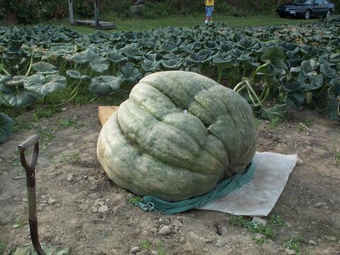 Now how about we have Len show you how two men can get squash taping at 840 onto a pallet so that we can weigh it? Notice the cloth at the blossom end and the shovel...