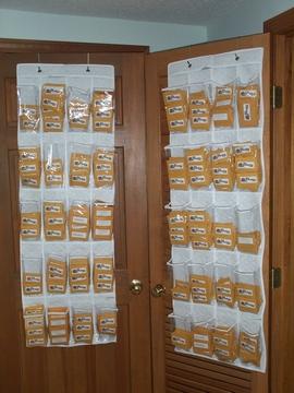 My wife had this brilliant idea for storing the massive number of seeds in the BigPumpkins.com inventory. They are shoe containers with clear plastic for easy viewing of the seed labels! She picked them up at Target for $5.99 each. By the way, that is just the top 40 seeds by weight. The rest are scattered all over the room.