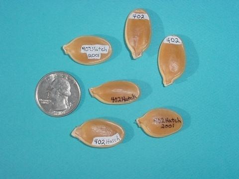 Some experiments at labeling seeds. Concerns; will the ink from the 'Sharpee' or the 'White-out' penetrate the shell and damage the seed? Can this be used to stop seed trade swindles? Could each grower be issued some kind of registered trademark to put on his seed? Could shells be branded (burned) or etched? Maybe seeds could be sealed in a laminated pouch with a label?