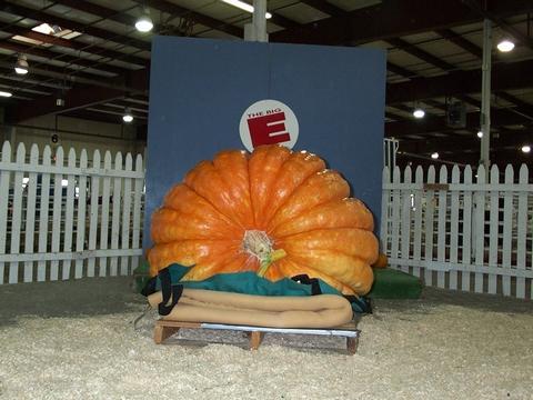 This is a picture of Kevin Companion's pumpkin before the weigh-off began. It ended up winning at 757.5 pounds. Congratulations Kevin!!