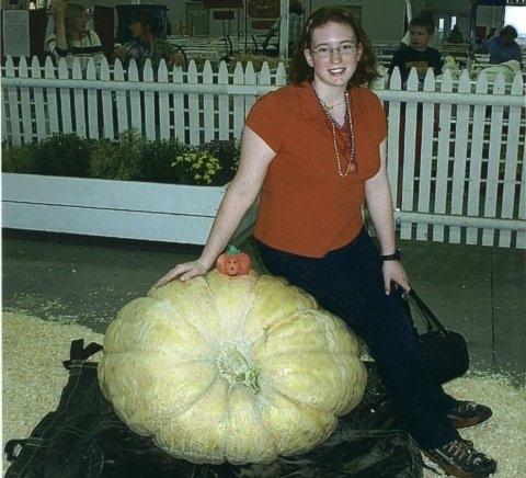 Angelica Wzoreck with her 395.5 pound pumpkin.