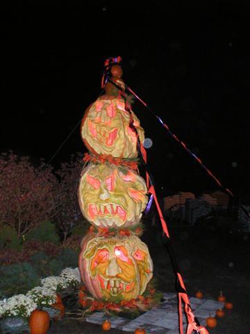 Carved Giant Pumpkin Totem Pole by Scott Cully.