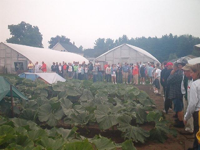 Two schoolbuses full of people made the rounds this year for the patch tour. Here folks line up to see some of the big ones at the patch of Bill Rodonis.