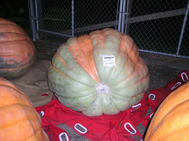 This pumpkin, grown by Mathew DeBacco, was disqualified for having a hole in the blossom end.