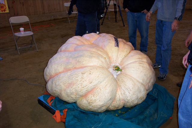 Weighing in at 906.0 lbs this pumpkin from Pittsfield, Massachusetts was weighed as an exhibition only.