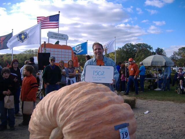 Ron Wallace with his new world record pumpkin of 1502 pounds! He grew this on his 1068 Wallace seed.