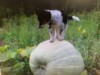 The pumpkin leaves are showing their age but on we go ! Hey Chop and Amelia. We have an orange one too.