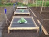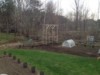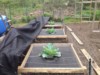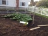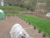Here is patch view 2. The gray squares by the long gourd trellis is where our giant cabbage will go.