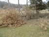 Scotch pines only live 15 to 20 years around here, then they get fungus disease and die. I will use these to rebuild the creek bank, so they aren't a waste. It is a bioengineering technique I learned from my 30 years with SCS/NRCS. I already have the OK from our DNR and just need to get Jacob to drag them to the creek.