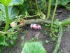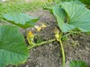 I just got done surveying the storm damage. There are a lot of shredded AG leaves but they should pull through. The only vine damage was a huge split on the 2036 ribbon vine. I will train a secondary to take over, but it looks more like the volunteer will take its place. The long gourds didn't fare as well. I lost the end of the vine on the 137.25 and the 129, and the 123 got a split and kink in the main. The 129 has another growing beside it, and the broken one looks like it may rot off close to the ground from the brown fungus. The Companion seems to be helping as I saw no more infected leaves. The watermelons aren't too bad and the field pumpkins were mostly undamaged. It looks like I won't get any green beans: the rabbits are eating them off. I ran 2 little ones out of the patch. I guess I need to hire Elmer Fudd to come over with his shotgun.