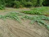 This is a close-up view of the garden. It looks like it was taken mid morning around the first of June, 2014. The gourds in the middle were the only part of the garden that did well after the big flood that hit at the end of June. There are some trees along the creek that shade the garden in the morning. The flood cut the bank real close to them and another one like it might drop them. So this spring Jacob and I will cut up the trees for firewood. We will anchor pine trees on the base of the bank to catch sand and heal up the bank so it doesn't erode into the garden. Jacob and I did our best to thin out the deer herd last fall and so did our neighbors.