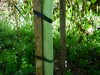 I thought the long gourd was a goner. The tip was shriveling up and had a brown spot on it. But today the tip had filled out and the brown spot was gone. I guess the AgriFos that I gave the plant did its job and stopped the disease from progressing. Just a little over 100" now. You can see how it is stretching the electrical tape, so I need to re-tape it. I guess you should never give up. I should have learned that last year.