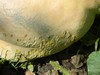 The rabbits gave me something else to try to heal up. The larger pumpkin on the 2036 Glasier. We have almost 3 weeks for it to either heal or rot before our second weigh-off. I will get more chicken wire for protection. The damage is being treated with Daconil and sulfur. If we can find the rabbits they will be treated with lead. Problem is that they are going strictly nocturnal. Next year I will be a lot more aggressive in rabbit control, especially when they are young and stupid.