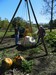My wife Lu Ann came down to take some photos before she left for work. We are getting ready to lift Jacob's pumpkin. Since it is his, he gets to do the muscle work on the hoist.