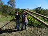 Monday Jacob and I did some work around the garden. As we were picking up firewood, Jacob found our pest control crew having a group hug. Hopefully it will result in some more mouse eaters. We got all of the long gourd trellis panels pulled out and the vines piled up. Tuesday I got the vines burned and half of the steel posts pulled. Today I pulled the rest of the posts, got the new trellis staked out, the center ditch dug out and low spots on the raised beds built up. I spread about 8 wheelbarrow loads of compost on the gourd site. Still lots of work ahead.