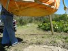 All 4 long gourds were planted today. A nice cloudy day for them. The next 2 days are also supposed to be cloudy/rainy. I applied 2 pounds of Osmocote Plus on twice the recommended area for the gourds. I hope it provides 6 months of a light feeding of a lot of micro nutrients. The AG's early true leaves are showing a little sunburn; I guess they weren't hardened off enough. Rookie mistake that a veteran like me should not have made. But newer leaves are OK so they should take off and grow.