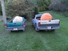 We loaded up a couple of small pumpkins to take to the grocery stores in Anamosa and Dyersville tomorrow. Our neighbor, who is a second year grower stopped to see why we were loading up so early for Pumpkinfest. He already weighed a 600+ in Wisconsin and has one that is double his pumpkin from last year. Whoever wins the guess the weight can keep the pumpkin if they want. This one was planted late and only got about 100 sq ft of vine. But it is a good cross, my orange 862 from 2 years ago pollinated with the 359 Foss. If the winner doesn't want it, I will take it for the seeds.