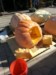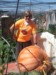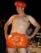 Even Flat Norm, travel size, came down to inspect the orange...prior to this photo he had his shoes and socks off to judge texture, density, and dance-ability. (Thanks Bart for the pict)