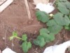 Tunnel #2. Left 968 (est) Shaw, 3 week old plant. Right, 1622 Young. (The Shaw is a 2032x2009 cross)