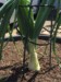 It is really hard to get a picture of what I am seeing. This plant has one big ribbon blossom coming out. The point of the pen shows where the flower starts. I am thinking this blossom is going to be difficult to get set. Leaf and vine growth is very deformed.