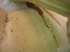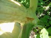 But, this isn't something you want to see when you go and measure your pumpkin. 1756 Howell @ day 35, EST 600 lbs, gaining about 40 lb/day now. Split goes all the way through the stem and inside the pumpkin (not into the cavity), couple inches deep.