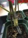 The runt is obviously on the R, it was slow to germinate & when it did, the cotyledons had some rot on them that I pared away.