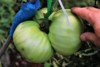 Believe or not, the largest I have going at this point is from last years small keeper from a 1.68 BZ that came from a nice ribbon stem when it was the next latest and greatest thing. Well, it's growing a nice tomato anyway on a round stem. From its first cool day in a long time to the next cool day, it went from hardly growing at all to +1.25" in a day. The temp really makes a difference. I put Sulphur powder on many of my tomatoes in spots where I worry about rot like the middle. I miss sometimes and it goes all over.
