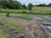 Melon patch. Didn't get the cheap landscape fabric covered in time and the sun rotted it quickly. Will have to deal with some weeds now. In the patch are 197 Harrington x 2, 187 Harrington, 146.5 Young x 2, 265 Williams, and 242 Wolf Watermelons along with 52.4 Harrington x 2, 61.85 Davis, 56.74 Davis, 71.5 English, 56.2 English, 69.6 McCaslin, and 64.7 Terry Cantaloupes. Put a little more effort in garden amendments this year which has drawn more worms into the garden. Downside is that they drew some moles which damaged the roots killing a 277 McCaslin watermelon and severely set back one 146.5 Young and one 52.4 Harrington.