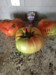 Back home - I guess we had some wicked warm weather when I was gone almost all of my maters flashed - this one rotted a little on the vine - another over 4lbs - dmg though