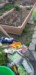Tomato hut at my mom's. . Way too early to be planting tomatoes. About a month ahead of last year. Also a giant tomatillo and some Easter egg plants.