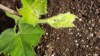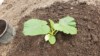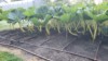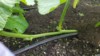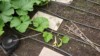 This is showing a small flower starting to grow out of the vine on top of the drip tape.