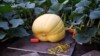 The 2183 has been an amazing plant. It grew aggressively and was relatively resistant to disease. It grew into a nice shape. It was solid and tough. Cut off the vine on Sept 24th. Transported to California and back to Canada. On display through hot and freezing weather and still did not have 1 soft spot or blemish when we cut her open 38 days later for seeds. And now it's giving more seeds than any other pumpkin I've grown....about 500.
