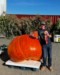 A seniors walking group came by for a patch tour and they are posing with Mama, my biggest pumpkin. Circ 18 feet. It will be going to California along with Baby, my smallest. They will be lifted by a crane truck on Sunday. The excitement is growing not only for the weighoffs but for the 1000 mile drive from Richmond to California. One of my worries was what I was going to do with the pumpkins for the week between weighoffs. Someone suggested that I contact Leonardo Urena. I Facebooked him and he replied in 5 minutes and offed his home to store the trailer and pumpkins. Now that's camaraderie !! Thank you Leonardo !
