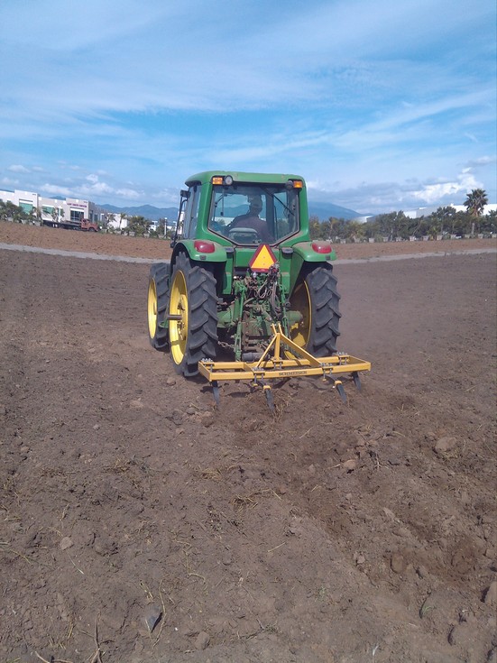cross ripping with 24 in. spring tooth ripper.