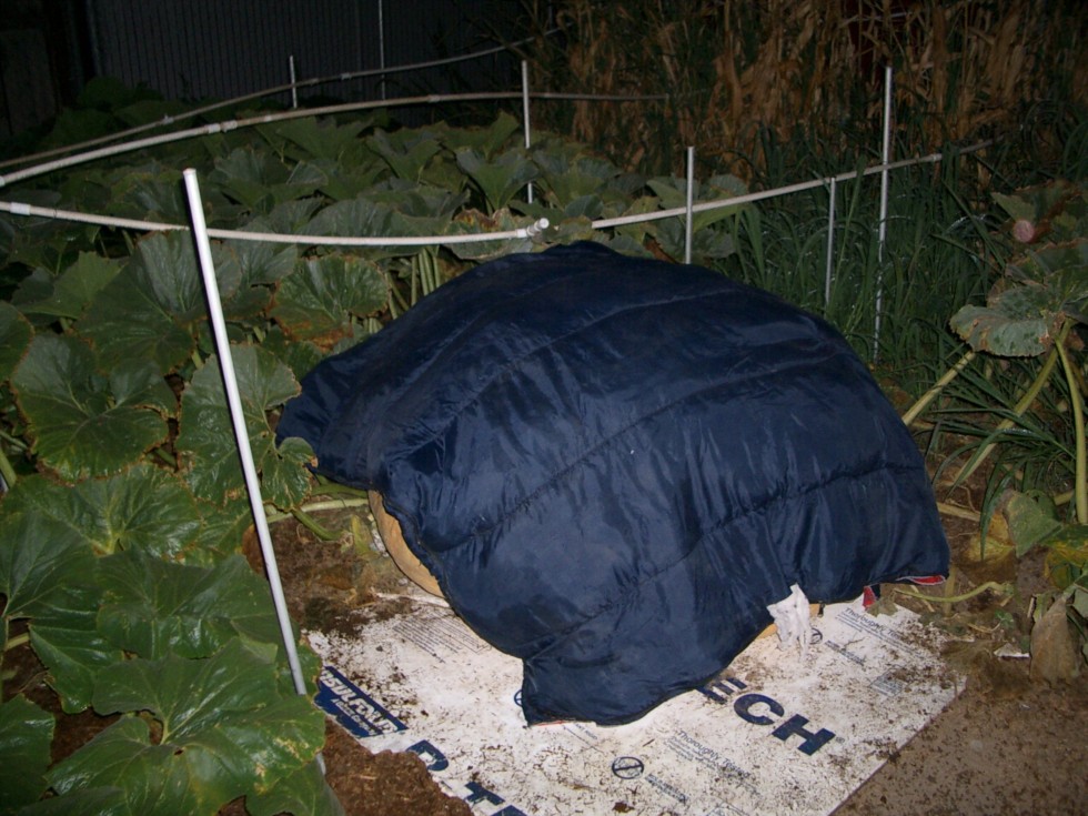 temprature might be in the 50's tonight---I covered pumpkin with a old sleeping bag to keep it warm