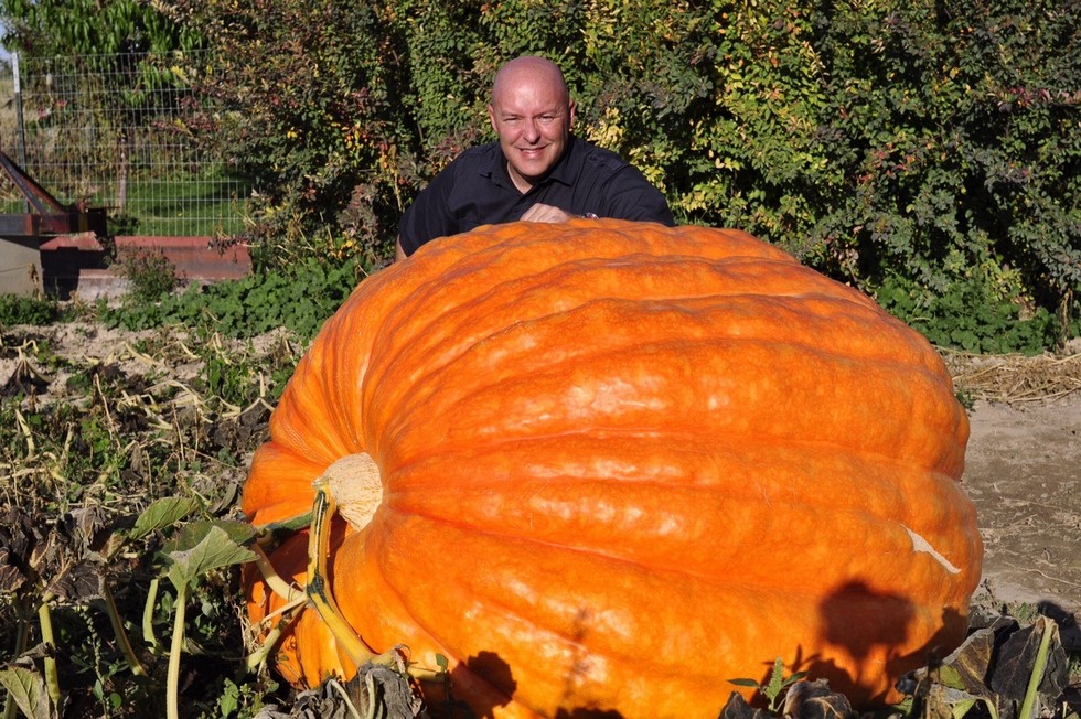 The Utah Giant Pumpkin Growers weighoff HD winner: 849 Cliff Warren. Grown from 500.5 Warren 2013 (608 Olilla X 1432 Northrup), 15% Light.