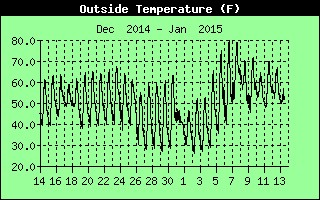 Here is the temp history over the last month. You can see prior to Jan 4 planting date the nite temps were chilly, after planting we have had smooth sailing so far....even a day at 81f!