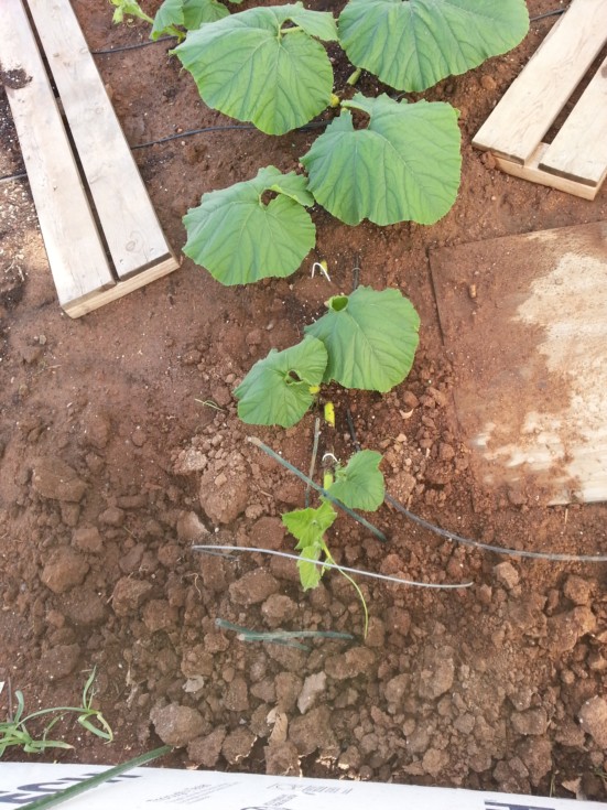 Tunnel 2, 1622 tip....um....notice the end of the tunnel in picture?.....in a couple days I'm gonna have to cut the door threshold out. I built a 6x6 shade cloth box with an open end to set against the door to allow the tip to continue to march towards the compost pile.....hope a female shows soon....at 6 1/2 weeks from planting in tunnel Jan 04.