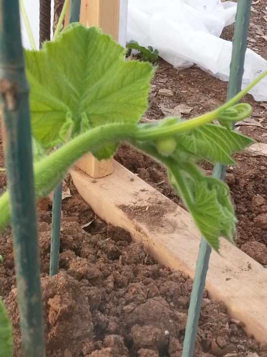 12 feet out.....and of course look where she is....right at the west door threshold! lol......she thinks she's so clever......I "sawzalled" the 2x4 threshold out of the way and loosened the soil in the area. If I need to, I can shift the tunnel end back to the prior pvc rib if I need kin growing room... The bud is currently 5 inches inside of the doorway....I assume it will travel 6-12 inches as the tip continues to grow out. I have a 6x6x2ft high pvc frame covered in shade cloth ready to protect the tip as it leaves the tunnel. I would assume within the month I will be rolling the northside of the tunnel film over to the south side...stopping at 5ft for a wind break, and adding a windbreak to the north side. Still debating whether I will remove the ribs...they are just slid over 24" rebar...might be better to get them out of the way to work.....maybe leave the ends...