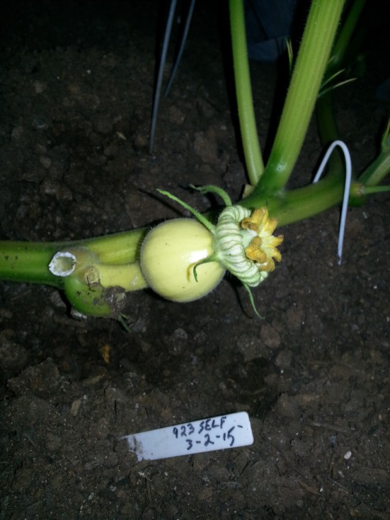 Here's the 923 Gerhardt. Also still shiny and looks viable. Noticed one of the secondaries is a double.....Experimenting on this one by pinching part of double tip to see if it will change to single....need to work on this plant in the afternoon. Secondaries slower to start on this so I let them run a bit before starting to bury......I need to bury vines and run the drip lines on this plant still.....and lift all tunnel sides and till from tunnel to open side areas.