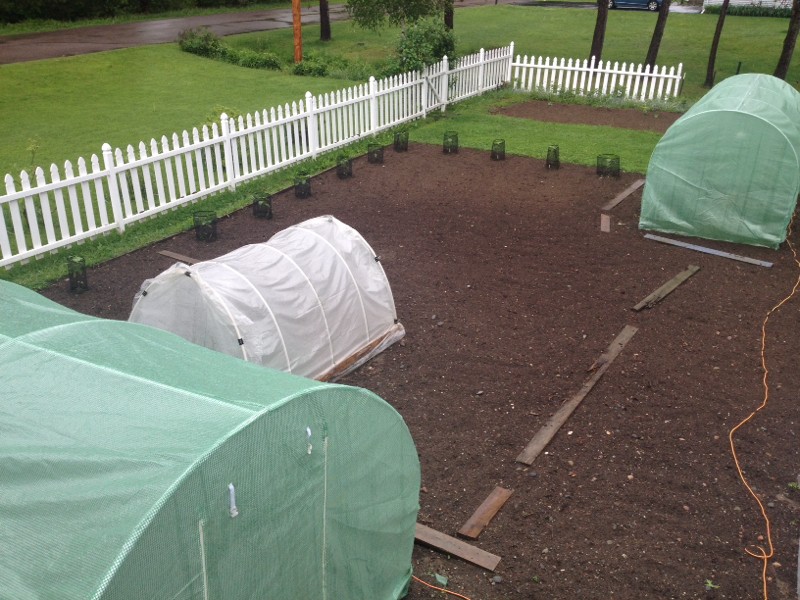 Everything will be closed up for 3 days. I am glad plants haven't out grown hoops. Patch view 3.