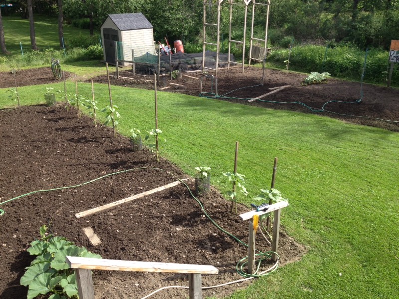 We have started to remove sunflower cages as they are tall enough to avoid the rabbits wrath. Patch view 2.