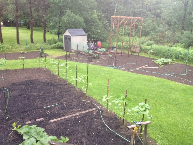We have decided not to bury vines this year for fear of rotting. We would rather get smaller pumpkins then no pumpkins. Patch view 2.